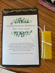 For our craft time, he rolled a sheet of beeswax around a small wick and made a candle. “That’s great!” I praised him. “Will you take this home to mommy?”